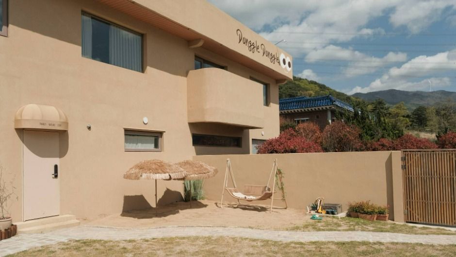 양산에 위치한 동글동글키즈풀빌라는 자연 속에서 수영과 휴식을 즐길 수 있는 동남아 감성 키즈 풀빌라이다. 객실은 A Type과 B Type으로 이루어져 있다. 두 객실 모두 프라이빗한 마당에서 바비큐 및 불멍이 가능하며 사계절 내내 따뜻한 온수풀까지 즐길 수 있다. 배달이 불가한 지역에 위치하여 입실 시 음식을 픽업하여 가져오는 것을 추천한다. 아이와 함께 소중한 추억을 쌓을 수 있고 30년이 넘는 돌담과 어우러진 수영장에서 힐링할 수 있다.
