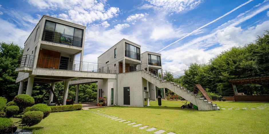까사모로는 복층 구조의 객실을 기본으로 하며 객실마다 제트 스파·월풀·스윔 스파 시설이 갖춰져 있어 물놀이와 피로 회복을 동시에 누릴 수 있는 공간이다.객실 내부는 깔끔하고 모던한 분위기로 꾸며져 있고, 와이파이·빔프로젝터·개별 바비큐장 등이 준비되어 있어 남녀노소 즐기기 좋은 펜션이다