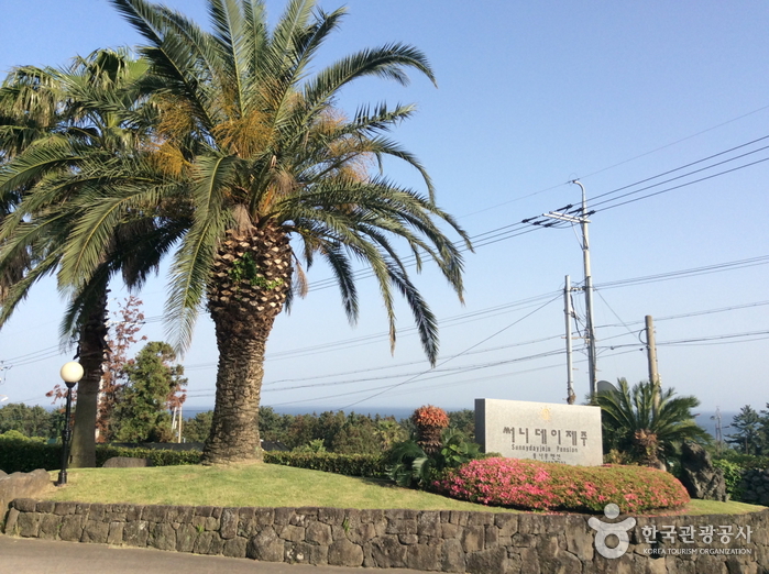 해질녘의 제주 써니데의 모습은 불빛이 가득한 숙소의 모습과 뉘엿뉘엿 해가져 파란 하늘이 파스텔 톤의 잿빛으로 변한 모습과 조화를 이루어 멋진 장관을 연출한다. 4가지 타입의 객실들이 마련되어 있으며 객실이 항시 만원이기 때문에 방문 전에 미리 예약을 하기를 권유한다. 펜션 주변에 산책로와 하이킹 코스가 설치되어있어 젊은이들과 어른들 사이에 모두 인기 있는 장소이다.
