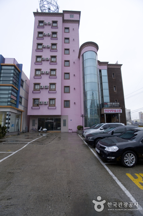 멀리서도 눈에 확 띄는 미라지모텔은 직사각형의 건물에 계단 층만 둥근 모양으로 멋지게 지어져 있고 유리가 썬팅되어 있어 밖에서는 안이 비치지 않아 사생활 보호가 가능한 곳이다. 침대 옆으로 벽 전체가 창문으로 되어있어 알람이 따로 필요 없이 햇살에 눈을 뜰 수 있으며, 두꺼운 커튼이 달려있어 늦잠을 잘 경우 커튼을 치면, 전혀 빛이 안 들어 오는 장점이 있다. 창문 앞에는 원목으로 된 고급스러운 티 테이블과 의자가 있어 편안히 쉬거나 창 밖을 보며 여유롭게 차 한잔을 할 수 있다. 깔끔한 화이트 벽지와 나무무늬의 바닥재가 잘 어울려 전체적인 방 분위기가 산뜻한 느낌이다. 텔레비전, 에어컨, 미니 냉장고, 정수기 등이 설치 되어 있어 편리하게 사용할 수 있다.
