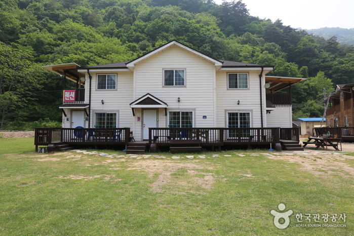 정선 강이흐르는마을 펜션은 강원도 정선군을 흐르는 동강의 상류인 조양강변에 위치한 펜션으로, 객실에서 조양강의 아름다운 풍경을 감상할 수 있다. 2019년에 신축된 펜션으로 깔끔하고 현대적인 인테리어로 꾸며져 있다. 객실은 총 9개로, 1~2인실, 3인실, 4인실, 5인실, 6인실 등 다양한 크기와 타입으로 구성되어 있다. 객실에서 조양강의 아름다운 풍경을 감상할 수 있으며, 펜션 내에는 전망 좋은 테라스도 마련되어 있다. 펜션에는 조양강을 따라 산책로가 조성되어 있어, 산책을 즐기며 자연을 만끽할 수 있다. 편안한 쉼터, 찜질방과 바베큐장이 마련되어 있어 가족, 친구들과 깨끗한 자연 속에서 즐거운 시간을 가질 수 있다. 또한 너른 잔디밭 공터가 있어 단체팀들이 족구와 축구 등 다양한 스포츠게임을 즐길 수 있다. 주변에는 다양한 볼거리 즐길거리들이 있다. 화암동굴, 정선오일장 등 정선의 관광지를 둘러볼 수 있고, 래프팅, 레일바이크, 동강 낚시 등과 같은 정선의 아름다운 자연을 즐길 수 있는 다양한 레저스포츠도 많다.