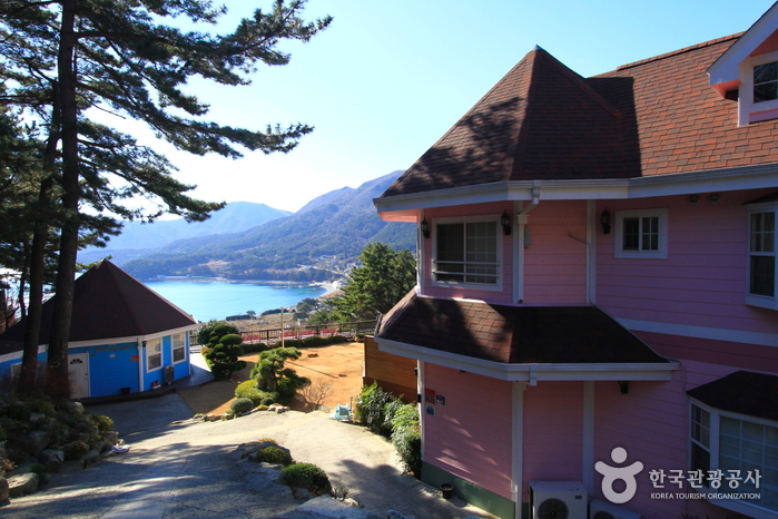 거제의 10대 명산인 북병산의 지맥이 흘러내려앉은 곳 외도, 해금강이 눈앞에 보이는 망양마을 어귀, 자연이 살아있는 이곳에 팔색조와 같은 예쁜 집을 지어 이름을 팔색조라 하였다. 약 200평의 잔디마당, 연못, 그리고 족구, 배구, 배드민턴 등 다양한 운동을 할 수 있도록 다목적 구장을 준비하였으며, 약 20평의 카페식 홀은 이벤트나 노래방으로 사용할 수 있도록 하였다.