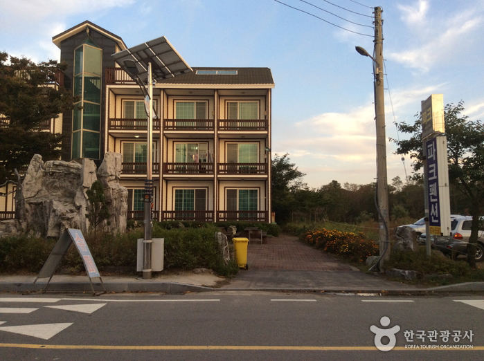 신두리해변의 백사장과 함께 깊고 푸른 바닷물이 태평양의 바닷가를 연상케 하는 때 묻지 않은 자연 신두리에 위치한 파크펜션은 바로 앞쪽에 시원하게 탁 트인 바닷가가 있어 주변경관이 뛰어나다. 야외에는 바베큐장이 준비되어 있으며 예쁜 인공폭포도 준비되어 있다. 펜션에서는 편의를 위해 마트도 함께 운영하고 있으며 물 빠진 해변에서는 갯벌체험도 함께 즐길 수 있다.