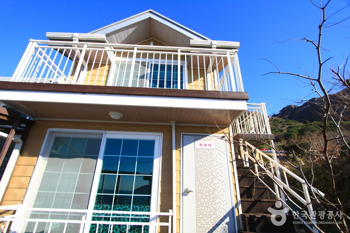 거제도의 최남단 마을 홍포에 오면, 남으로 넓은 남태평양의 바다 위에 가왕도와 매물도가 떠있고, 해가지는 서쪽으로는 멀지 욕지도의 좌사리, 소지도, 연화동 등의 작은 섬들이 낙조에 젖어 황홀한 황금빛을 머금은 모습을 볼 수 있다. 작은 마을 홍포에 1층은 찻집과 식사를 해결할 수 있고, 2~3층은 콘도식 민박의 수미르 펜션이 있다.