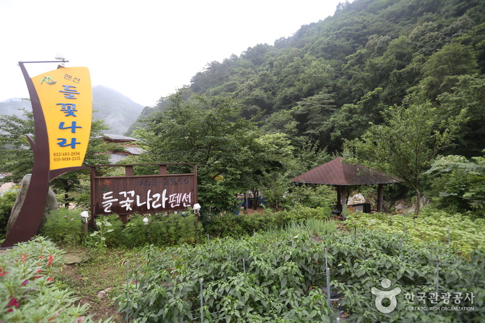 들꽃나라펜션은 모험관광의 1번지 인제 내린천 상류지역 방태산 자연휴양림 입구에 위치하고 있으며 경관이 수려할 뿐 아니라 원시림계곡 옆에 있어 계곡의 정취를 즐길 수 있다. 봄이면 희귀 들꽃 감상과 산나물을 채취하며 봄의 향기를 느낄 수 있으며 여름이면 계곡에 발만 담가도 더위를 식혀주고 방동약수, 래프팅, 산악자전거, 1급수 물고기를 잡아 회를 먹을 수도 있다. 또한 가을이면 방태산 등반을 하면서 단풍놀이도 하고 송이버섯을 채취할 수 있고, 겨울이면 오천지 설경으로 자연의 위대함과 시골의 푸근함을 느낄 수 있다.