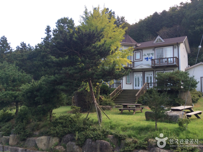 그린빌펜션은 연인이나 가족을 위한 펜션으로 2층 유럽식으로 건축하였으며, 전경 및 인테리어 또한 꽃향기와 녹차향기가 물씬 풍기게 꾸며 놓았다. 야외에는 바베큐장이 마련되어 있고, 새벽 안개를 마시면서 산책을 하기에 적합한 녹차밭 산책로가 있으며, 가까운 곳에 율포해수욕장도 위치해 있다.