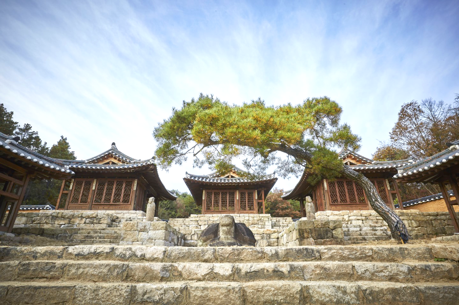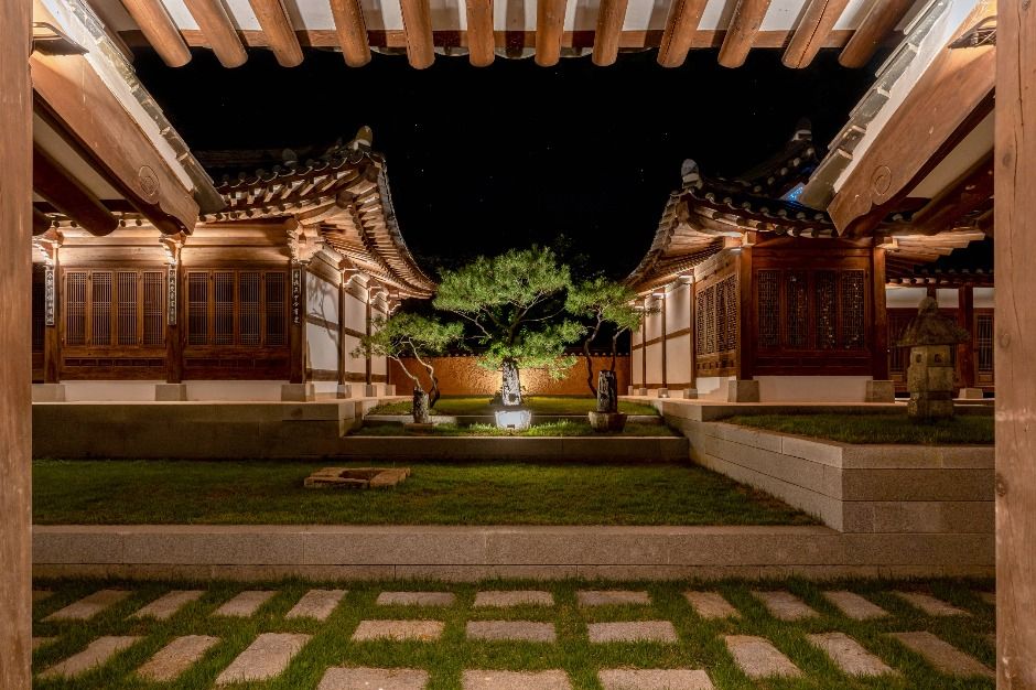 락고재 하회한옥호텔 기와본관은 유네스코 세계문화유산 하회마을의 장터와 주차장 인근, 마을 외곽에 위치한 전통 기와 한옥 숙박시설이다. 관광객의 진입 지점과 가까워 접근성이 높으며 하회마을 방문 전후로 이동이 용이한 위치적 특성을 지니고 있다. 호텔 부지에는 하회마을이 낙동강에 둘러싸인 지세를 본떠 만든 수로가 조성되어 있어 마을의 공간적 특징을 호텔 내부에서도 체감할 수 있도록 구성되어 있다. 기와 본관은 여러 동의 전통 기와 한옥으로 이루어져 있으며 건물 간 이격 거리와 창호 배치를 고려하여 객실마다 서로 다른 외부 조망이 확보되도록 설계되어 있다. 각 객실에서는 한옥 단지 내부의 마당, 중정, 주변 조경 등을 다양한 각도에서 관찰할 수 있도록 구성되어 있다. 건물 일부는 조선시대 궁궐의 건축 비례와 공간 구성을 참고해 설계되었으며 전통 목조 구조와 한식 기와 등 기본 건축 요소가 유지되어 있다. 부지 내에는 시대가 다른 석물과 전통 조형물이 배치되어 있어 투숙객이 지역 건축문화와 한국의 전통적 미감을 함께 경험할 수 있는 환경이 조성되어 있다.