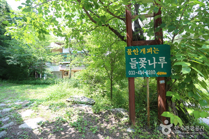 홍천강변에 위치해 있는 물안개피는 들꽃나루 펜션은 강변에서 낚시와 수영, 강변을 따라 자전거 하이킹, 강변과 함께 바비큐 파티와 특별한 캠프파이어를 즐길 수 있다. 또한 홍천강변에 산과 강이 잘어우러진 펜션으로 1층과 2층으로 이루어있다.