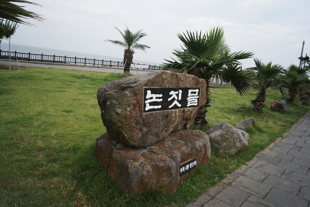 - 논짓물은 용천수가 바다로 흘러나가며 바닷물과 민물이 만나 만들어진 천연 해수욕장이다. 지금은 바다로 유입되는 민물의 양이 많아 둑을 막아 풀장과 샤워장을 만들어 여름 물놀이 장소로 인기가 좋다.