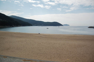 모래가 곱고 돌들은 좀 있네요 마을쪽으론 조그마한 몽돌이 깔려있어요