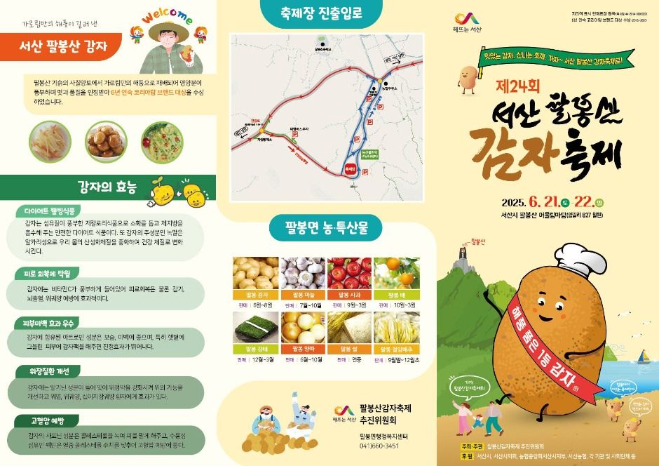 서산팔봉산감자축제는 감자축제 전용 축제장인 팔봉산 어울림마당(팔봉면 양길리 827번지 일원)에서 진행되는 축제이다. 팔봉면 주민이 주체가 되어 주민주도형 축제로 강화되었으며, 팔봉산 감자와 지역 농특산물의 우수성을 홍보하고, 지역 이미지를 제고하는 홍보의 장을 마련하기 위한 축제이다.