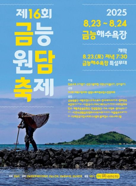 제16회 금능원담축제가 2025년 8월?23일~24일, 제주시 한림읍 금능해수욕장 일대에서 개최된다. 이번 축제는 제주 고유의 어로문화 유산인 ‘원담’을 보존하고 전승하기 위해 지역 주민들이 주관하는 대표 행사로, 원담의 역사와 구조를 실제로 배우고 체험할 수 있다.