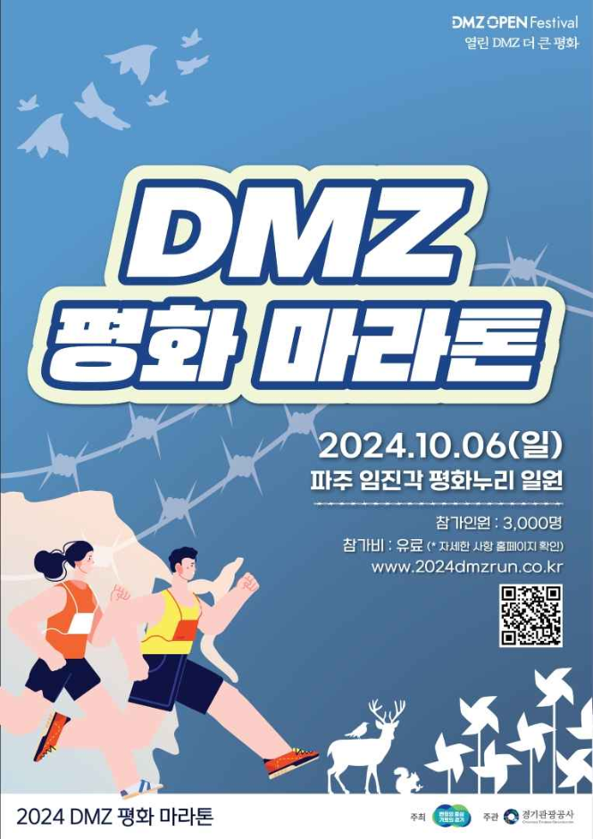 - DMZ에서 평화통일을 향한 희망에 벅찬 질주가 시작된다. 민간인 통제 지역을 들어갈 수 있는 유일한 스포츠 축제 평화 걷기, 평화 마라톤대회이다. 공연과 마켓 등 다양한 프로그램도 준비되어 있으니 많은 참여 바란다.