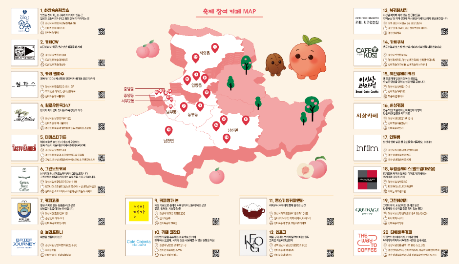 경산 카페 축제는 경상북도 경산시에서 2025년 6월 20일부터 7월 4일까지 15일간 열리는 지역 문화예술 축제이다. 축제는 경산시 관내 20개 카페를 거점으로 하며, 각 카페가 자체 기획한 전시, 공연, 체험, 클래스 등을 통해 시민과 관광객에게 다양한 문화적 경험을 제공한다. 본 축제는 경산시의 대표 농특산물인 신비복숭아의 출하시기에 맞춰 개최되며, 지역 농산물과 카페 문화, 예술 콘텐츠를 연계한 복합형 도심 축제로 자리매김하고 있다. 주요 프로그램으로는 경산시립합창단 및 교향악단의 개막 공연, 바리스타 대회, 어린이 미술대회, 신비복숭아 가든파티, LP 재즈 카페 등이 있다. 또한 SNS 이벤트, 포토존 운영, 일부 카페 할인 행사 등 시민 참여형 콘텐츠도 병행되어 젊은 층과 가족 단위 관람객의 호응을 유도하고 있다. 본 축제는 경산의 일상 속 공간을 문화예술의 장으로 전환하며, 지역 소상공인과 시민이 함께 만드는 참여형 축제라는 점에서 지역 활성화 및 도시 브랜드 제고에 기여하고 있다.댓글목록