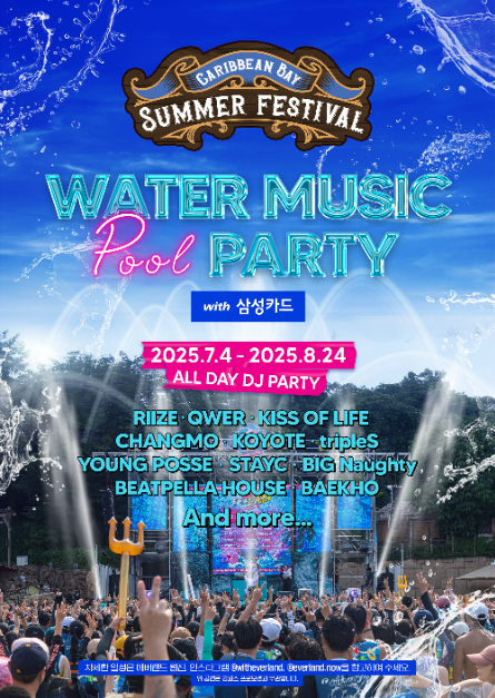 경기도 용인에 위치한 캐리비안 베이 야외 파도풀 특설무대에서 매년 여름 시즌마다 진행되는 '워터 뮤직 풀파티'는 뜨거운 여름, 시원한 파도풀에 발을 담근 채 라이브 공연과 디제잉 퍼포먼스를 동시에 즐길 수 있는 이색 뮤직 페스티벌이다. 특히 코요태, QWER, 라이즈, 트리플에스, 백호 등 K-POP 스페셜 아티스트들이 릴레이로 참여하는 스페셜 아티스트 데이에는 현장감 넘치는 무대 뿐 아니라 유명한 DJ들의 수준급 디제잉 퍼포먼스를 즐길 수 있다. 초대형 스크린을 통한 생생한 현장 생중계와 파워풀한 워터 특수효과까지 더해져 물놀이와 음악이 완벽하게 어우러진 신개념 뮤직 페스티벌 '워터 뮤직 풀파티'에서는 가족, 친구, 연인 누구와 함께 와도 잊지 못할 여름 추억을 만들 수 있다.댓글목록