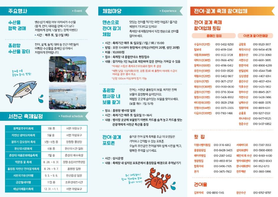 - 입장료 무료 (체험 프로그램 유료 맨손 전어 잡기 체험 10,000원)