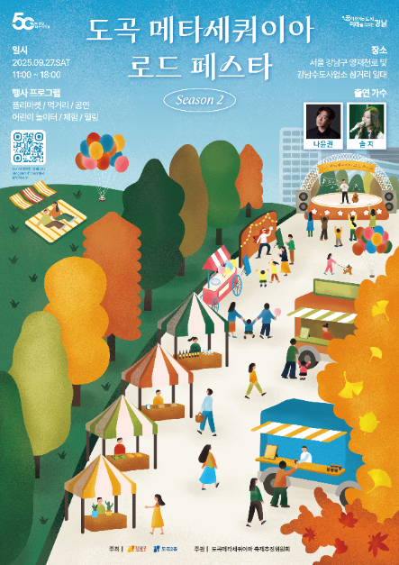 올해 개최 되는 도곡 메타세쿼이아 로드 페스타 시즌2는 작년 관람객들의 뜨거운 호응에 힘입어 아름다운 양재천로 메타세쿼이아길에서 다시 한 번 개최된다. 이번 도곡 메타세콰이아 로드 페스타는 지난 번과 동일하게 마켓 스트리트(프리마켓), 뮤직 스트리트(음악회), 푸드 스트리트(먹거리존), 플레이 스트리트(원데이클래스)와 더불어 '밖으로 나온 도서관'를 설치하여 축제 속에서도 휴식을 느낄 수 있는 공간을 보완하여 구성한다. 마켓 스트리트는 지역 소상공인 및 우수업체와 더불어 강남구 사회적경제기업이 참여한 총 30개 업체가 참여하여 다양한 물품을 선보이며, 관내 요식업 종사자와 다양한 푸드트럭으로 구성된 푸드 스트리트는 방문객들의 입맛을 사로 잡을 예정이다. 그리고 다양한 테마의 체험 프로그램과 더불어 환경을 생각하는 업싸이클링 공예, 그리고 각종 직능단체 들이 펼치는 체험과 나눔의 장도 펼쳐진다. 마지막으로 가을의 축제 분위기에 어울리는 나윤권, 솔지 등 다양한 장르의 가수들이 출연하여 이번 축제의 분위기를 더욱 무르익게 할 것이다.