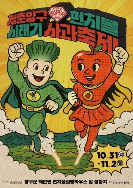 2025 청춘양구 펀치볼 시래기사과축제로서 슈퍼(Super) 펀치볼(Punch bowl) 주제로 2025. 10. 31.(금) ~ 11. 02.(일) 까지 3일간 양구군 해안면 펀치볼 힐링하우스 앞 성황지에서 개최된다.댓글목록