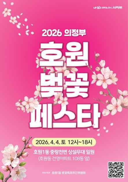 ‘호원 벚꽃 페스타’는 중랑천변 벚꽃이 만개하는 시기에 맞춰 개최되는 의정부의 대표 봄 축제이다. 아름다운 벚꽃길을 배경으로 공연과 전시, 다양한 체험 프로그램이 어우러져 시민 누구나 즐길 수 있는 문화행사이다. 행사장에는 먹거리부스, 플리마켓, 나눔장터가 함께 운영되어 풍성한 즐길거리와 볼거리를 제공한다. 또한 피크닉 공간과 이벤트가 마련되어 가족, 친구, 연인과 함께 여유로운 봄날의 분위기를 즐길 수 있으며, 도심 속에서 특별한 휴식과 추억을 경험할