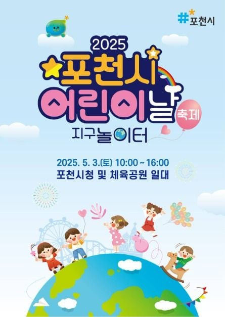- 포천시 어린이날 축제가 2025년 5월 3일 토요일 오전10시부터 오후 4시까지 개최된다. 장소는 포천시청 광장 및 체육공원 일대이며 식품안전의날 연계행사로 함께 진행된다. 가족 모두가 함께 즐길 수 있는 다양한프로그램으로 특별한 하루 경험을 누릴 수 있다.