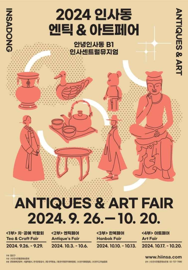 대한민국 제1호 문화지구 인사동에서 개최되는 인사전통문화축제는 1987년 시작된 이래 올해 37회째를 맞이한 명실상부 대한민국 대표 문화예술축제이다. 전통문화업종 전시를 비롯하여, 다양한 체험행사 및 공연 등을 통해 우리의 전통문화를 널리 알리고 인사동 문화지구를 전통문화와 현대가 만나는 향연장으로 자리매김하고자 한다. 인사동 문화지구 전 지역과 더불어 안녕인사동 지하 1층 전시장에서 개최하는 이번 축제는 1부 차공예박람회, 2부 엔틱페어, 3부 한복박람회, 4부 아트페어로 진행된다. 전통문화와 현대문화가 만나 다채로운 향기로 가득찰 인사동에서 가족, 친구, 연인과 함께 행복한 추억을 만드시길 바란다.