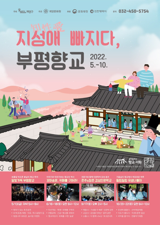 - 2022 <지성(知性)애(愛) 빠지다, 부평향교>는 고려시대에 세워져 오랜 기간 유생들의 역사를 간직하고 인문정신이 살아 숨 쉬는 유서 깊은 문화유산 부평향교에서 다양한 주제의 교육·체험·공연 프로그램을 통해 구민들이 즐겁게 지성(知性)을 함양하고, 내가 사는 지역 문화재 향교에 대한 애정을 키우며 남녀노소 빠져들 수 있게 한다.