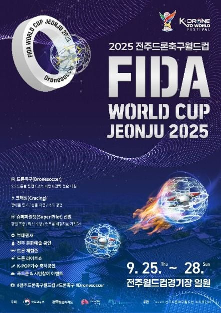 2025 전주드론축구월드컵(FIDA World cup Jeonju 2025)는 2025년 9월 25일부터 28일까지 전주월드컵경기장 광장에서 개최되는 제1회 드론축구월드컵이다. 드론축구 개발 10주년을 맞이하는 올해, 전세계 드론축구 선수들이 전주에 모여 세계 최고의 드론축구 국가 자리를 놓고 격돌한다. 시범종목으로 크래싱 대회와 슈퍼파일럿 선발대회가 열리고, 국토교통부와 항공안전기술원이 주최.주관하는 드론산업 국제 심포지엄과 함께 문화예술공연, 드론 체험프로그램, 2025 Buy 전주 GOGO페스티벌, 국토교통부장관기 초중고 전국드론축구대회 등 다양한 행사가 진행된다.