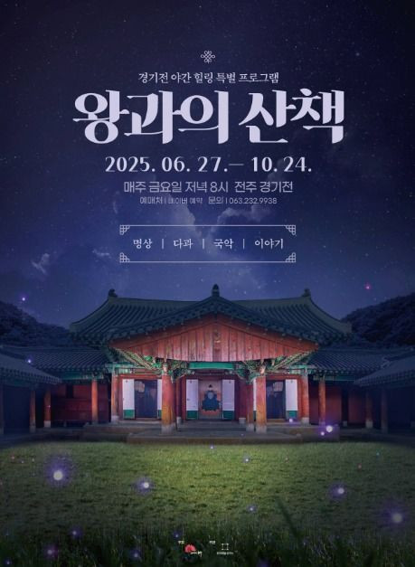 '왕과의 산책-탐방편'은 밤의 경기전을 거닐며 사실감 있는 단막극을 보면서 경기전 속 문화유산에 얽힌 역사적 사실을 일깨울 수 있는 역사해설 프로그램이다. 밤의 경기전에서 펼쳐지는 사실감 있는 연극은 마치 시간 여행을 온 것 같은 환상적인 경험을 선사하고, 우리가 국가유산에 대해 알아야 하고 지켜야 하는 이유에 대해서도 새롭게 일깨워 준다. '왕과의 산책-힐링편'은 오프닝을 통해 프로그램의 시작을 알리면 정성껏 차린 다과상이 제공되고, 마음을 울리는 국악 연주(양금)가 이어진다. 잇따라 싱잉볼 소리에만 집중하며 내면을 바라보고 마음을 비우는 명상이 진행된다. 다과상을 즐기는 동시에 국악 · 이야기를 들으며 명상으로 비운 마음을 채우고 오감으로 힐링하는 시간을 제공한다.