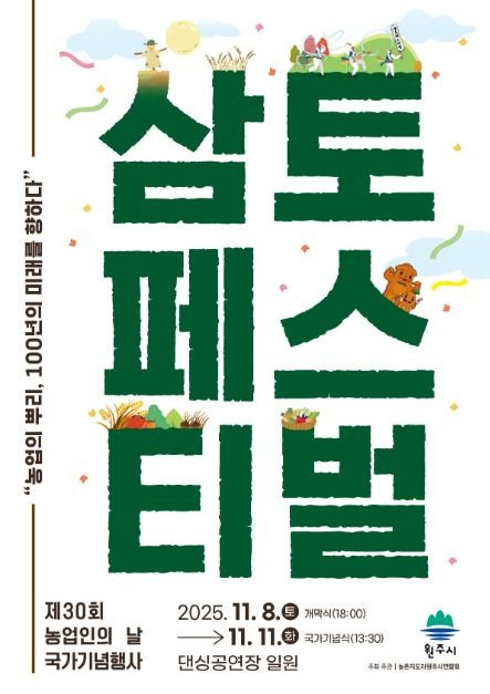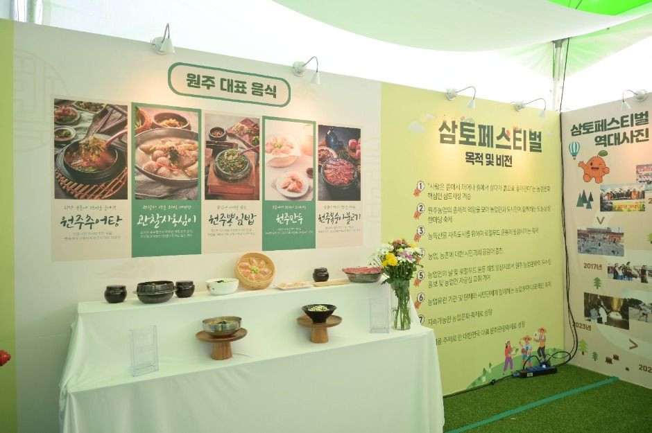 원주삼토페스티벌은 원주의 농업과 농촌문화를 시민과 함께 즐기기 위해 마련된 지역 대표 축제이다. 축제는 지역에서 생산된 우수한 농특산물을 소개하고, 농업의 가치를 알리며, 다양한 체험과 공연을 통해 남녀노소 누구나 참여할 수 있는 장을 마련한다. 농산물 직거래 장터에서는 신선한 먹거리를 직접 구입할 수 있으며, 가족 단위 방문객을 위한 농촌 체험 프로그램이 운영된다. 또한 지역 예술 공연과 어울린 무대 행사가 마련되어 풍성한 볼거리를 제공한다. 삼토페스