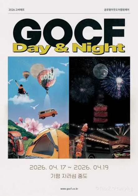 - 글로벌 아웃도어 캠핑페어인 GOCF(고씨에프)는 국내 최초 야외에서 펼쳐지는 아웃도어 캠핑 페어이며 국내외 다양한 아웃도어 대표 브랜드의 제품을 전시하며 새로운 아웃도어 라이프를 제시한다. 이틀간 가평 자라섬 중도에서 개최되며 전시부스 96개와 판매부스 70개가 운영 될 예정이다.