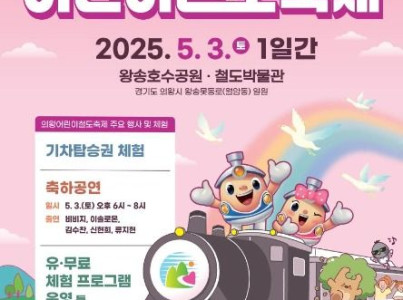의왕어린이철도축제가 5월 3일 왕송호수공원 일원(왕송호수공원, 철도박물관)에서 펼쳐진다. 어린이날 전후로 개최하는 이번 축제는 의왕철도축제에서 올해 명칭을 의왕어린이철도축제로 변경하여 보다 다채롭게 꾸며질 것이다. 2013년 철도특구 지정에 따라 특화된 전국 유일의 철도 관련 축제로, 올해로 19회째 함께하고 있는 의왕시 대표 축제이기도 하다. 철도특구이자 의왕시 대표 관광자원인 왕송호수 일원에서 아름다운 자연경관을 배경으로 특대형디젤기관차 모형전시, 철도퀴즈쇼, KTX콜라주기차꾸미기체험,간이역vr체험 등 다양한 철도문화를 체험할 수 있다. 특히 올해는 축제의 주 타겟인 어린이에게 꿈과 희망을 선사하는 다양한 체험프로그램과 공연을 중심으로 프로그램이 진행된다. 인기가수의 축하공연등 볼거리를 다양하게 제공하게 된다.
