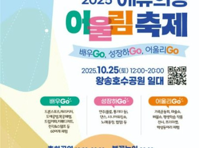2025 에듀의왕! 어울림 축제로 경기도 의왕시 왕송호수공원에서 진행되는 축제이다. 올해 2025년은 배우GO, 성장하GO, 어울리GO!의 타이틀을 가지고 진행된다. 'GO'는 적극적인 참여와 역동적인 변화를 상징으로 배움을 통해 개인이 성장하고, 그 성장이 다시 공동체의 어울림으로 확장되는 교육 축제의 장을 마련하였다. 이번 축제의 프로그램으로 축하공연, 불꽃놀이, 부스체험, 가족운동회 등의 다채로운 프로그램들이 준비되어있다.