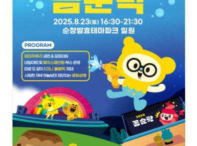2025 꼼순락은 오는 8월 23일(토) 순창발효테마파크 일원에서 개최될 예정이다. 본 행사는 지역민과 관광객이 함께 어울릴 수 있는 체험형 여름 행사이며, 어린이부터 성인까지 폭넓은 연령층이 즐길 수 있는 다양한 프로그램으로 구성되어 있다. 주요 프로그램은 인기 애니메이션 ‘엄마까투리’ 캐릭터 공연, 시원한 물총놀이, 온 가족이 참여 가능한 미니 올림픽, 돗자리 영화관 등 야외에서 펼쳐지는 여름방학 콘텐츠가 마련될 계획이다. 특히 가족 단위 방문객을 주요 대상으로 하며, 자세한 사항은 추후 별도 공지를 통해 안내 될 예정이다.