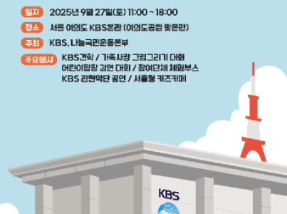 이 행사는 ‘우리 아이들과 함께하는 가을나들이’를 주제로 온 가족이 함께 즐길 수 있는 다채로운 체험과 공연으로 구성된 축제이다. 2025년 9월 27일 토요일 오전 11시부터 오후 6시까지 서울 여의도 KBS 본관 일원에서 열리며, KBS와 나눔국민운동본부가 주최하고 보건복지부, 서울특별시가 후원한다. 주요 프로그램으로는 가족사랑 그림 그리기 대회를 시작으로 개막식, 어린이 합창 경연대회, 시상식 및 현장 가족 장기자랑, KBS 관현악단 리허설과 축하공연이 이어지며, 아이들이 무대의 주인공이 되어 가족과 함께 특별한 추억을 쌓을 수 있다. 또한 부대 프로그램으로 KBS 방송국 견학, 참여기관 체험 및 홍보 부스, 서울형 키즈카페, 휴게존, 포토존이 상시 운영되어 다채로운 경험을 제공한다. 이 행사는 아이와 가족이 함께 어울리며 소통하고, 즐거운 시간을 통해 유대감을 강화하는 뜻깊은 가을나들이의 장이 될 것이다.
