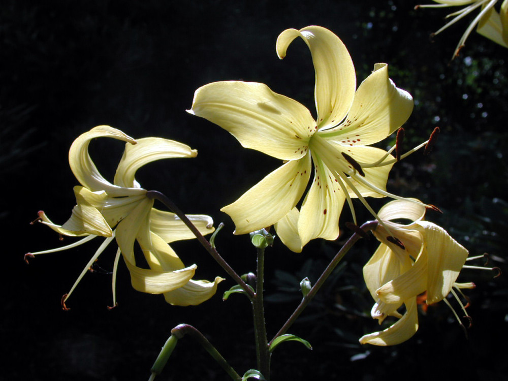 비늘줄기는 흰색이고 지름 5~8cm의 둥근 모양이며 밑에서 뿌리가 나오며 줄기는 높이가 1~2m이고 검은빛이 도는 자주색 점이 빽빽이 있으며 어릴 때는 흰색의 거미줄 같은 털이 있다. 잎은 어긋나고 길이 5~18cm의 바소꼴이며 녹색이고 두터우며 밑 부분에 짙은 갈색의 주아가 달린다. 꽃은 7~8월에 피고 노란꽃이 도는 붉은색 바탕에 검은빛이 도는 자주색 점이 많으며 지름이 10~12cm이고, 줄기 끝에 4~20개가 밑을 향하여 달린다. 화피 조각은 6개이고 바소꼴이며 뒤로 심하게 말린다. 밀구에 털이 있고, 6개의 수술과 1개의 암술이 길게 꽃 밖으로 나오며, 꽃밥은 짙은 붉은빛을 띤 갈색이다. 한국 · 일본 · 중국 · 사할린 등지에 분포한다.