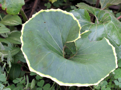 기본 정보 식물명 : 털머위 '킨칸' 학명 : Farfugium japonicum 'Kinkan' 과명 : 국화과 (Compositae) 자원구분 : 재배품종 분류체계 : 피자식물문 > 쌍자엽식물강 > 초롱꽃목 > 국화과 > 털머위속