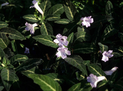 기본 정보 식물명 : 데보시아나루엘리아 학명 : Ruellia devosiana Hort. Makoy ex E. Morren 과명 : 쥐꼬리망초과 (Acanthaceae) 자원구분 : 재배품종 분류체계 : 피자식물문 > 쌍자엽식물강 > 통화식물목 > 쥐꼬리망초과 > 루엘리아속