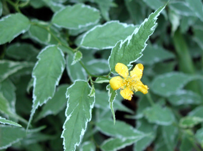 기본 정보 식물명 : 황매화 '픽타' 학명 : Kerria japonica 'Picta' 영문명 : Jew's mallow; Japanese rose 과명 : 장미과 (Rosaceae) 자원구분 : 재배품종 분류체계 : 피자식물문 > 쌍자엽식물강 > 장미목 > 장미과 > 황매화속
