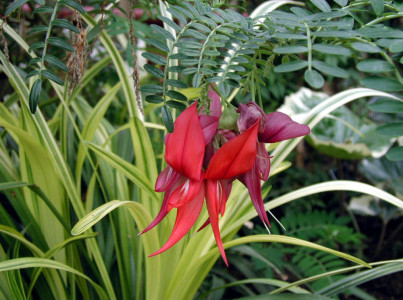 기본 정보 식물명 : 클리안더스 푸니케우스 학명 : Clianthus puniceus Banks & Sol. ex Lindl. 영문명 : Parrot's-beak,Parrot's-bill,Pea Glory,Kowhai red,Glory pea,Lobster claw 과명 : 콩과 (Leguminosae) 자원구분 : 재배품종 분류체계 : 피자식물문 > 쌍자엽식물강 > 장미목 > 콩과 > 클리안투스속