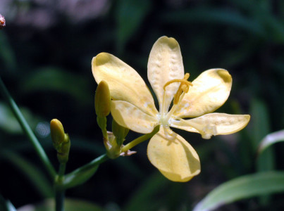 기본 정보 식물명 : 범부채 학명 : Belamcanda chinensis (L.) DC. 영문명 : Blackberry Lily, Leopard Flower 과명 : 붓꽃과 (Iridaceae) 자원구분 : 자생종 분류체계 : 피자식물문 > 단자엽식물강 > 백합목 > 붓꽃과 > 범부채속 원산지 : 한국 [약용 정보] 약재명 : 사간(射干) 이용방법 : 근경을 봄 또는 가을에 채취하여 햇볕에 말린다. 효과 : 각기, 강화, 구창, 무월경, 소염, 아통, 외이도염, 외이도절, 인후 통증, 일체안병, 림프절염, 진정, 진통, 진해, 청열해독, 치통, 편도선염, 폐렴, 해수, 해열, 현훈구토 복용방법 : (내복): 탕전(湯煎)하거나, 가루약하여 복용한다. (외용): 가루를 내어 상처 부위에 뿌리거나, 짓찧어 상처 부위에 붙인다. ☞ 장기간 복용 시 허한 자는 설사하기 쉬우므로 신중히 사용한다.