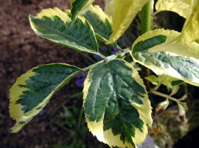 기본 정보 식물명 : 블랙엘더베리 '아우레오마르기나타' 학명 : Sambucus nigra 'Aureomarginata' 영문명 : Elder European; Elderberry EuropeanBlack elder; Bourtree; Common elder; Elderberry; European elder 과명 : 인동과 (Caprifoliaceae) 자원구분 : 재배품종 분류체계 : 피자식물문 > 쌍자엽식물강 > 산토끼꽃목 > 인동과 > 딱총나무속