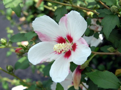 기본 정보 식물명 : 무궁화 '시로수지리' 학명 : Hibiscus syriacus 'Shirosuziiri' 과명 : 아욱과 (Malvaceae) 자원구분 : 재배품종 분류체계 : 피자식물문 > 쌍자엽식물강 > 아욱목 > 아욱과 > 무궁화속