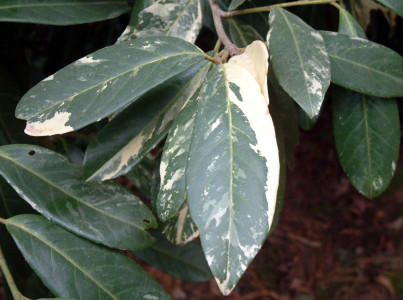 기본 정보 식물명 : 무늬월계수귀룽 학명 : Prunus laurocerasus 'Variegata' 영문명 : Cherry laurel; Laurel cherry; Laurel 과명 : 장미과 (Rosaceae) 자원구분 : 재배품종 분류체계 : 피자식물문 > 쌍자엽식물강 > 장미목 > 장미과 > 벚나무속