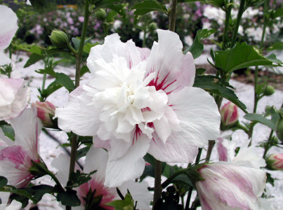 기본 정보 식물명 : 무궁화 '미미하라하나가사' 학명 : Hibiscus syriacus 'Mimiharahanakasa' 과명 : 아욱과 (Malvaceae) 자원구분 : 재배품종 분류체계 : 피자식물문 > 쌍자엽식물강 > 아욱목 > 아욱과 > 무궁화속