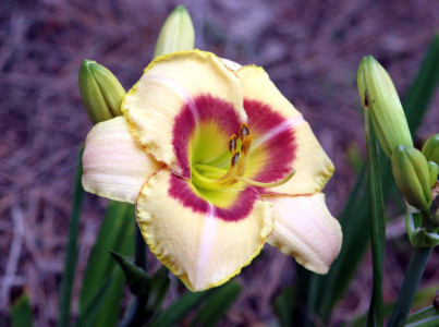 기본 정보 식물명 : 원추리 '데어링 디셉션' 학명 : Hemerocallis 'Daring Deception' 과명 : 백합과 (Liliaceae) 자원구분 : 재배품종 분류체계 : 피자식물문 > 단자엽식물강 > 백합목 > 백합과 > 원추리속