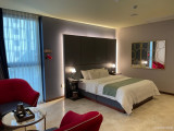 오로라호텔은 김포 구래역에서 도보로 약 10분여 거리의 디에스프라자 건물에 최근 오픈한 호텔이다. 김포의 핫플레이스인 구래동에 있다 보니 근처에 맛집이나 놀거리도 가득하다. 지하 주차장과 1층에 호텔 전용 입구가 따로 있어 전용 엘리베이터를 타고 7층으로 올라가면 호텔 로비로 바로 갈 수 있다. 프런트 옆에 셀프바가 있고, 커피와 음료, 라면을 끓여 먹을 수도 있도록 준비되어 있다. 토스트는 아침 6시부터 12시까지만 제공이 된다. 객실에 스타일러와 전자레인지도 비치되어 있어 편하게 사용할 수 있다. ※반려동물 동반 불가