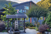 의령군 수암로에 있는 꽃피는 산골은 15가지 산야초 한방 육수를 넣어 끓인 백숙, 오리 전문점이다. 산속에 둘러싸여 운치가 있는 곳으로 건물 주위 싱그러운 나무와 야생화들이 피어 있고, 물레방아가 있어 식사 후 여유 있게 풍경도 감상할 수 있다. 직접 재배한 신선한 재료와 지하 120미터 천연 암반수를 정수, 살균 처리하여 사용하고 있다. 높은 천장으로 개방감이 있고, 깔끔한 분위기의 내부는 통유리 너머로 울창한 나무들을 볼 수 있다. 정갈한 반찬과 몸보신하기에 좋은 꽃피는 산골은 전 메뉴 예약제로 운영하여 방문 전 예약은 필수이다. 근처 의령 여행 코스로 좋은 수암사와 구름다리도 있어 함께 둘러보기 좋다.