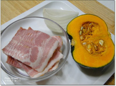 반찬이 걱정될 때 단호박과 베이컨,양파로 후다닥 만들어 보세요~넘 멋있고 영양많은 단호박베이컨 요리가 됩니다~ 허브를 마지막에 약간 뿌려서 상큼함도 더했구요... 아이들 반찬.. 어른들 맥주 안주로도 잘 어울리겠지요^^토스트와 함께 하면 근사한 브런치가 됩니다.재료: 단호박 반개(180g정도), 베이컨 1팩(270g), 양파 1/4개, 허브믹스 약간, 소금 아주약간 베이컨은 5cm정도로 잘라 둡니다. 단호박은 씨를 빼고 다시 반으로 잘라서 두께 7mm, 길이 5cm정도로 자르고양파도 같은 크기로 잘라 둡니다.재료들이 크기가 비슷하면 더욱 깔끔해 보입니다. 오일 두르지 않은 팬에서 베이컨을 반쯤 익힌 다음 단호박을 넣고 저으면서 중불에서 볶아 줍니다. 단호박이 반쯤 익으면 양파 넣고 소금 약간 뿌리고 노릇하게 볶은 다음..베이컨이 짭조롬하니까 소금은 약간만 넣습니다. 마지막에 허브믹스 솔솔 뿌리면 됩니다~ 달콤한 단호박과 짭조롬한 베이컨이 어울려 넘 맛있군요~~ 처음부터 단호박을 넣으면 너무 물러져서 지저분하고 맛도 못합니다.두께도 7mm정도가 적당하구요~ 옐로푸드의 진수~ 단호박은...젊음의 대명사 단호박, 건강이 넝쿨째 들어온다.단호박이 노화방지와 각종 암예방에 도움이 되는 식품으로 주목받는 이유는베타카로틴 만큼이나 항산화작용을 하는 루테인성분이 풍부하기 때문이다.루테인은 폐암발병을 억제하고 노화에 따른 안구질환을 예방하는 데 좋다고 알려져있다.이처럼 노화를 늦추는데 결정적인 역할을 하는 베타카로틴과 루테인성분은단호박속살의 노란색이 짙을수록 풍부하다. 옐로푸드에 풍부한 비타민C는 면역력 증강에 효과적이다.여름에 호박을 먹으면 좋은 이유가 바로베타카로틴 때문이다.한여름 강한 볕을 지나치게 쬐면 체내 물질이 화학변화를 일으켜 세포를 파괴하여암이나 노화의 원인이 되는 유해물질을 만든다.단호박의 베타카로틴 성분은 이러한 유해물질을 제거하는데 효과적이다.단호박은 칼로리가 100g당 29kcal로 매우 낮아 다이어트 식품으로 좋으며수분함량이 높고 섬유질이 많아 갈증해소와 변비예방에 효과적이다.단호박의 대표 영양성분인 베타카로틴은 기름에 잘 녹는 지용성 비타민이므로쪄 먹거나 기름에 구우면 베타카로틴이 쉽게 체내로 흡수된다.