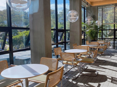 원포레스트는 이름에서 느껴지듯이 조경을 신경 써서 숲속에 온 듯한 느낌을 주는 대형 카페다. 1층과 2층 테라스로 이루어져 있는데 1층은 우드톤의 편안한 느낌이고 1층에서 통창을 통해 야외정원이 훤히 보여서 마치 숲속에 온 것 같은 기분을 갖게 해준다. 2층엔 중앙에 징검다리를 만들어 놓아서 시원한 개방감이 있다. 루프탑과 야외정원은 조경을 섬세하게 해 놓아서 아기자기 예쁘고 청량하다.
