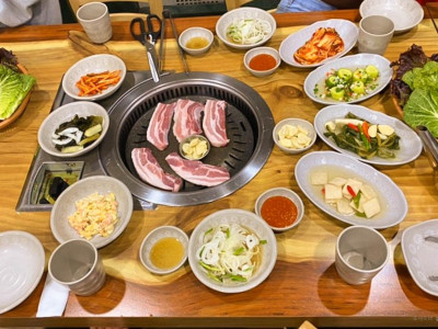 금수강산은 일산 고양동에서 오랫동안 운영해 온 생고기 맛집이다. 주택 스타일의 외관과 밖에서 차 마시는 원두막 모양의 공간이 정겨운 느낌을 준다. 내부는 입식 테이블 좌석이 넓게 마련되어 있고 개별 룸도 많아 소규모 모임이나 가족 모임에 적당하다. 메뉴로는 생등심, 수제돼지갈비양념구이, 생삼겹살 등이 있고, 주꾸미 쌈밥정식, 제육 쌈밥정식도 있다. 쌈 채소를 직접 재배해 손님상에 내놓는다. 기본 반찬은 정갈하고 담백한 맛이며, 식당 앞에 주차장이 넓게 있다.
